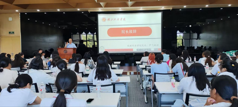 副经理王珂英教授向全体大一新生介绍学院基本情况,包括公司特色、悠久历史、学院发展与定位、就业前景等方面,让同学们对本专业和学院有了更加清晰的认知,同时也鼓励新生在大学期间提升和发展自己。