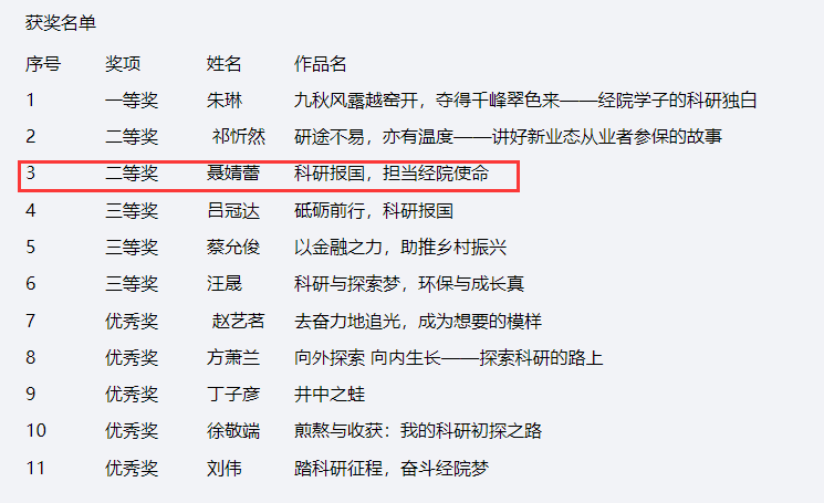1月2日,“立科研报国志,做奋斗经院人”主题征文比赛结果正式公布。经过众多员工的积极参与,共有11名同学获奖 。